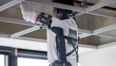The exoskeleton designd to support employees’ shoulders during overhead work.
