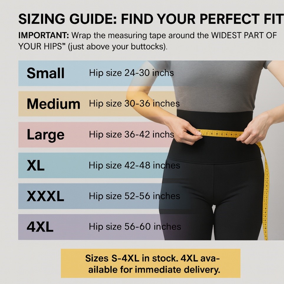 IMPORTANT: Wrap the measuring tape around the widest part of your hips (just above your buttocks).